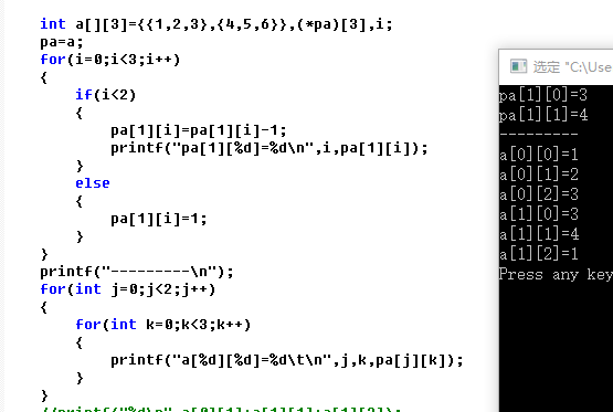 int a[][3]={{1,2,3},{4,5,6}},(*pa)[3],i;