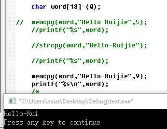 如果只有单独的第三句memcpy(),输出应该是Hello-Rui