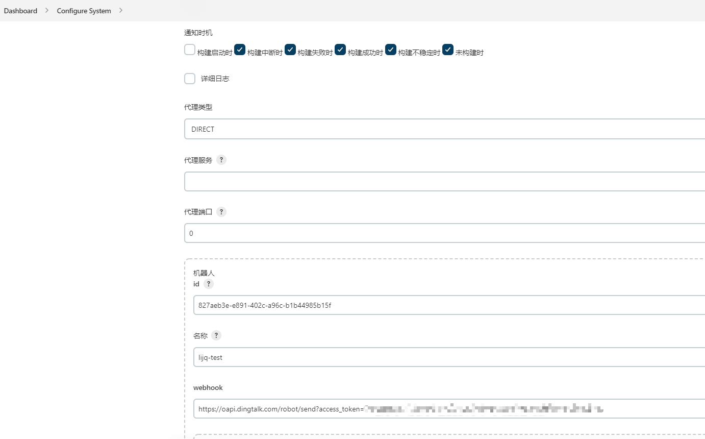 2. jenkins系统管理=>系统配置=添加钉钉机器人