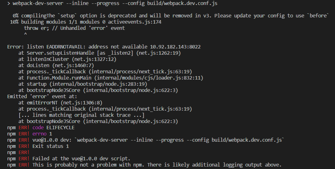 VUE Error: listen EADDRNOTAVAIL: address not available(转)