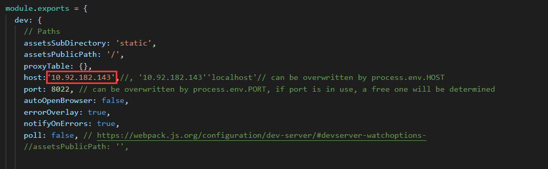 config文件夹,找到index.js文件,将host的值修改为localhost, 如下图所