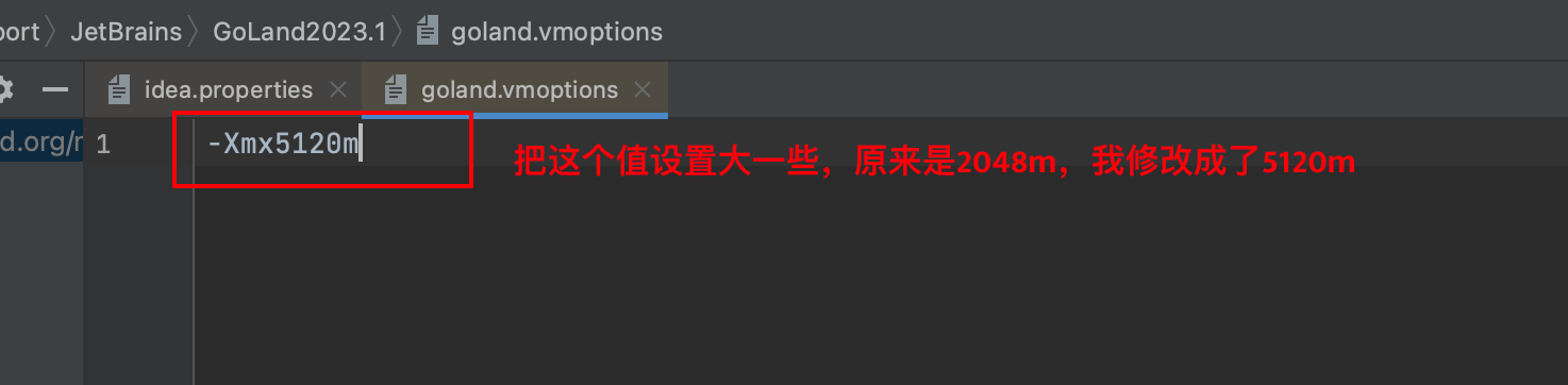 参数的值设置大一些,这个参数表示 goland 能智能识别的最大文件大小
