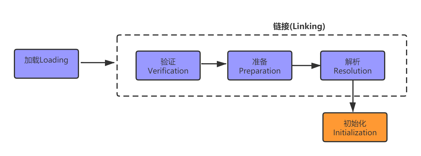 类的加载过程(整体加载过程,包括加载、链接、初始化)