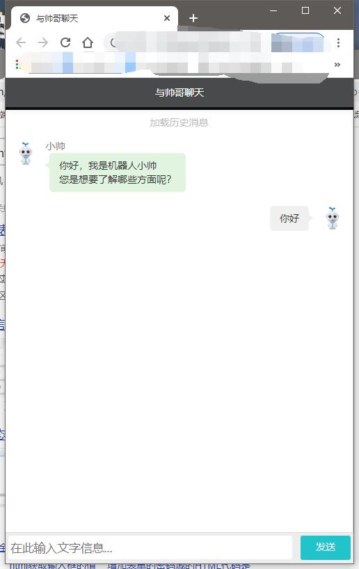 上图中就是电脑上运行效果,这里是基本框架,还没有开发实际与服务器交互的功能,只实现简单的发送文字等UI的css样式布局,右边的常见问题,可以写上常见的客户遇到问题,用户点后,直接发送到聊天框中,这样体验会更好。