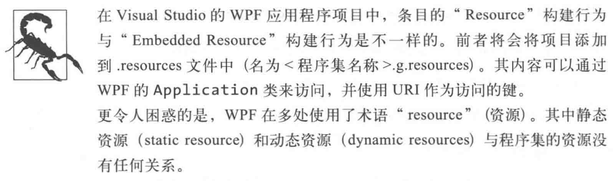- 资源 :嵌入程序集中的其他数据,例如图像和本地化文本。
