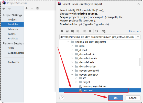 方式二:打开IDEA,选择右侧Maven面板,点击 + 号,选中对应项目的pom.xml文件,双击即可。