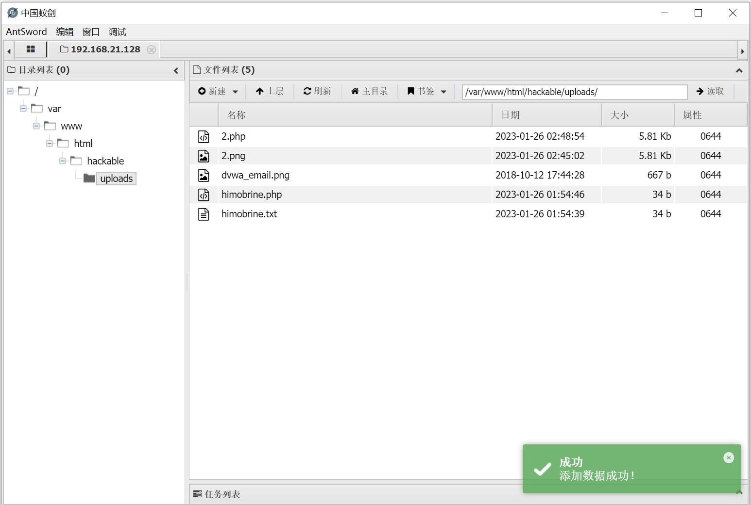 就能直接看到文件路径,访问它用蚁剑链接就可以