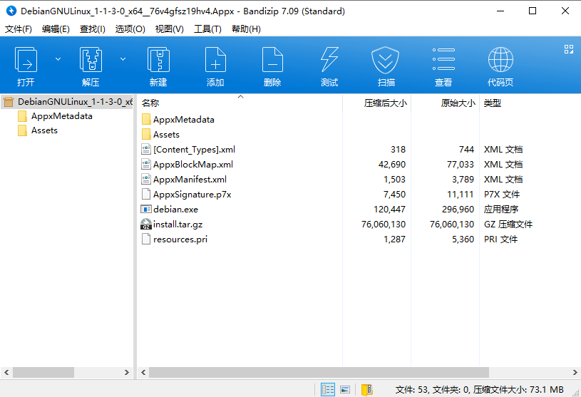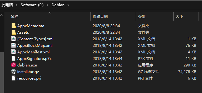 Debian.exe(与下载的发行版一致,若是Ubuntu则为Ubuntu.exe)的文件,直接双击执行即可,会自动弹出一个控制台窗口