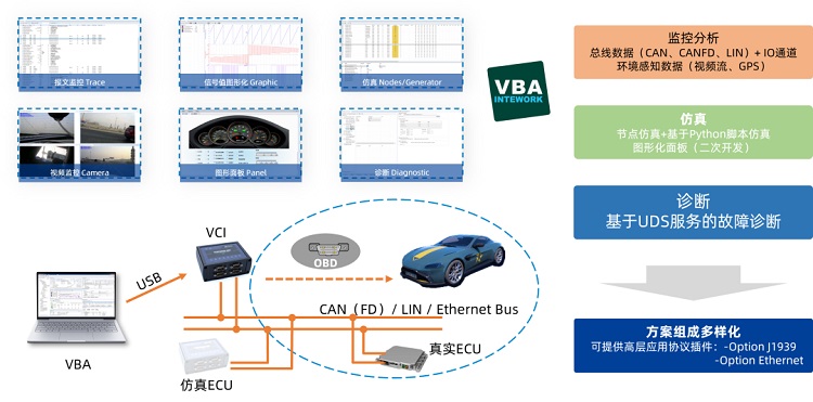 针对汽车智能化发展趋势下电控单元软件开发过程中通信网络设计需求、车载总线的仿真需求、通讯总线快速高效测试需求、多ECU标定测量需求、CCP/XCP下的标定数据下载和Flash编程需求,经纬恒润围绕通信网络设计复杂耦合且操作繁复、仿真编程设计逻辑复杂、测试效率低下、标定数据无法观测等开发难题,开发了包含总线数据库设计工具(INTEWORK-VDE)、总线监控分析及仿真工具(INTEWORK-VBA)、ECU测量标定工具(INTEWORK-VCM)的车载总线工具链,构建了服务于研发仿真分析到测试系统验证全生命周期的总线工具链。