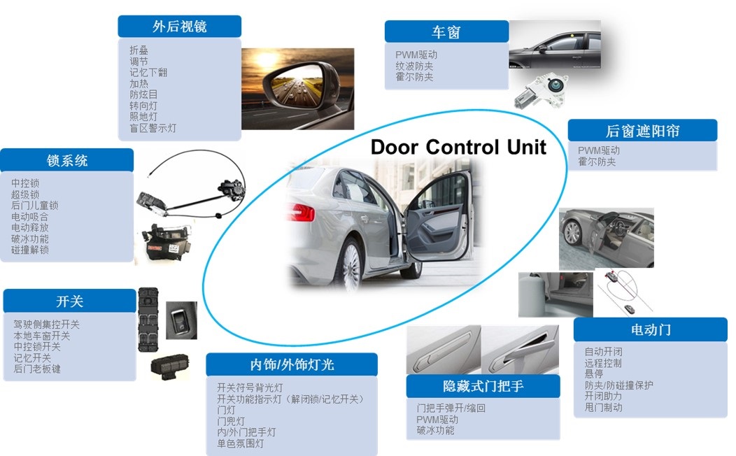 经纬恒润自主研发的车门域控制器DDCU,能够实现电动车窗控制、后视镜控制、中控锁控制、电动吸合门、电动折展门把手、自动门、变色玻璃等功能。
