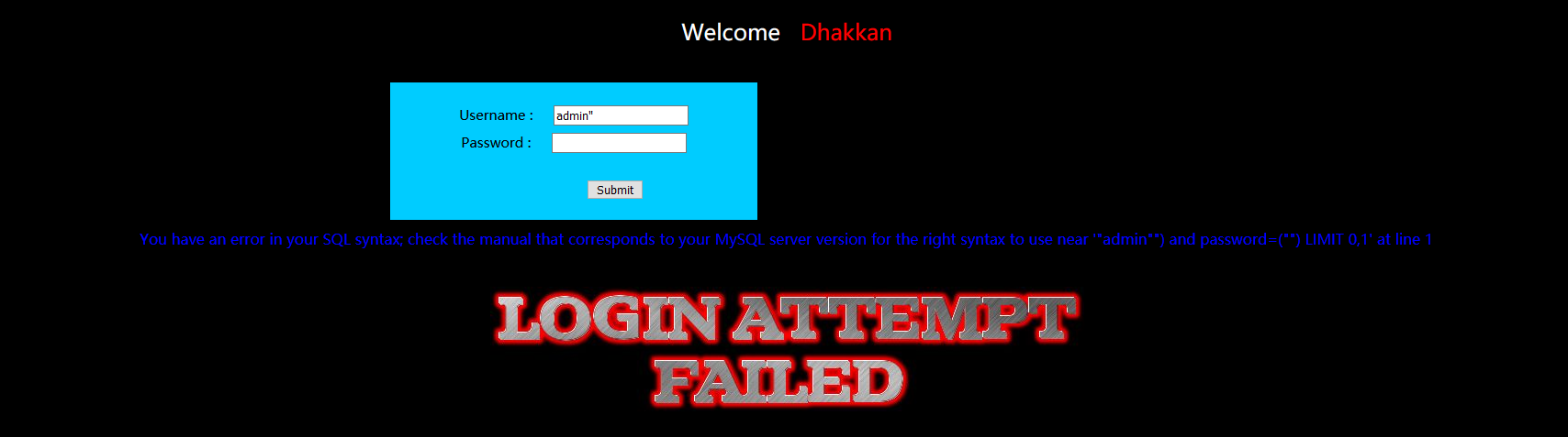- 在用户名正确后,页面便能够返回Mysql错误信息