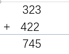 323+422=?数字比较大的话该怎么算呢,其实查数也可以查出来,不过需要的一组数就特别大。那就需要做表了