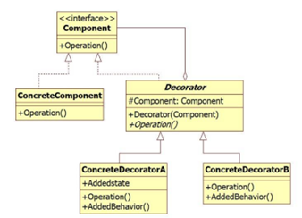 Decorator是一个抽象方法,它用于派生各种用来装饰Component的不同装饰器,每一个不同的装饰工作由不同的装饰器来完成,具体的装饰器只负责装饰(AddedBehavior),其它工作ConcreteComponent应该已经完成好了。