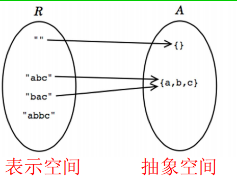 ADT开发者关注表示空间R,而用户关注抽象空间A。