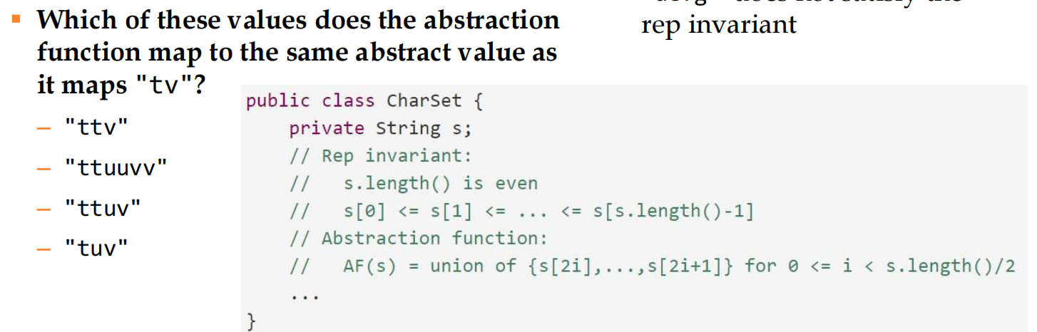 ADT的特性:表示泄漏、抽象函数AF、表示不变量RI