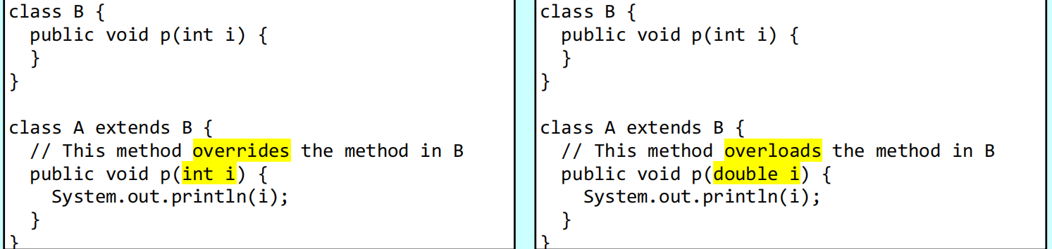 重载: 多个方法具有同样的名字,但有不同的参数列表或返回值类型