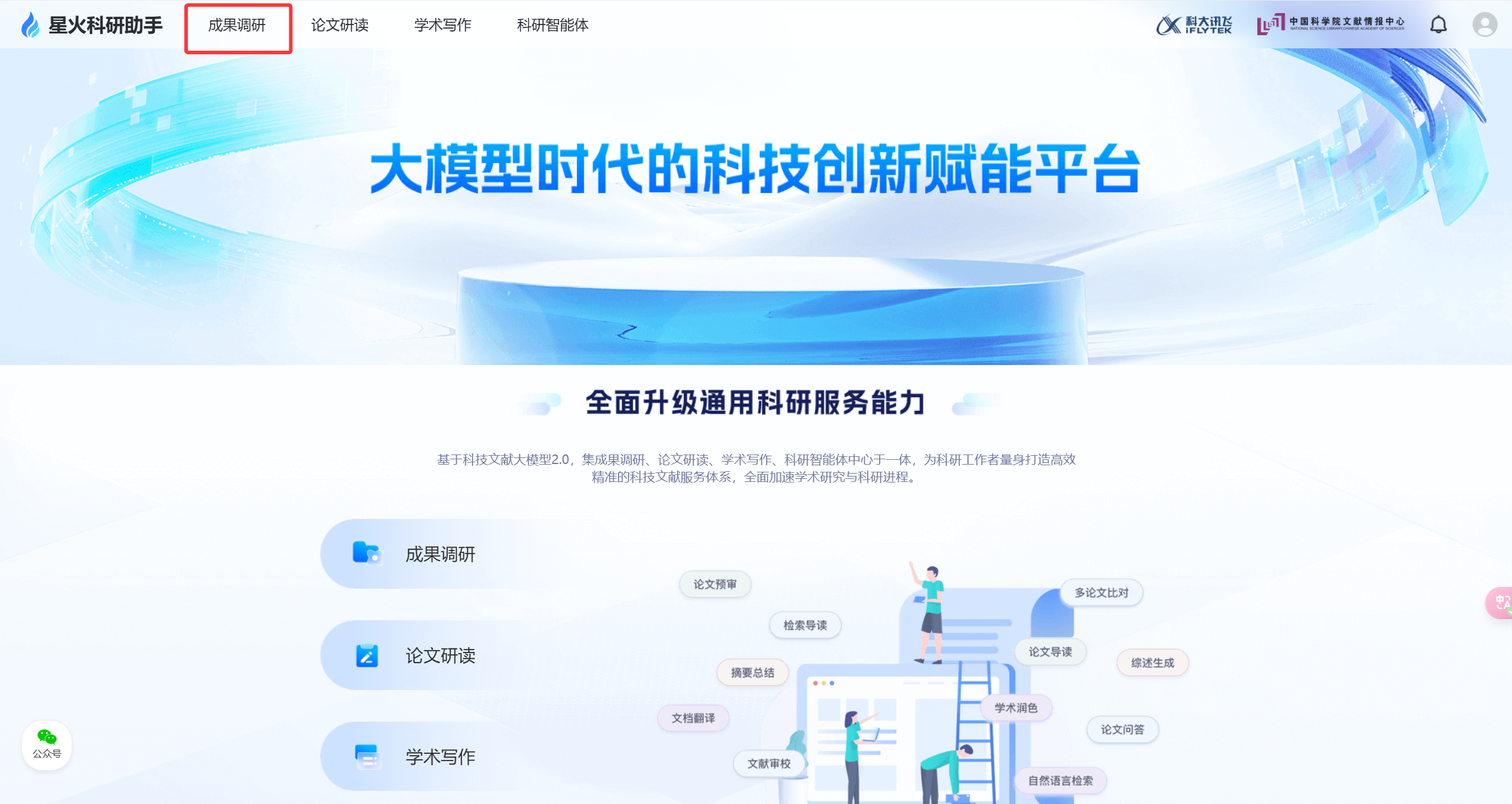星火科研助手是笔者最常使用的查找论文的AI助手。登陆之后点击最上面一行中的论文调研功能