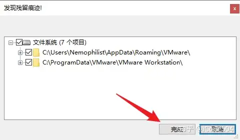 4. 卸载完成,此时Geek会我们检测出安装残留,我们只需要点击完成即可,清除卸载残留: