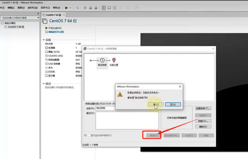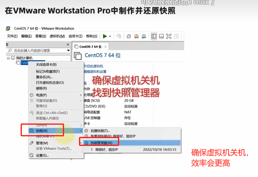 1、在VMare Workstation Pro 中制造并还原快照;