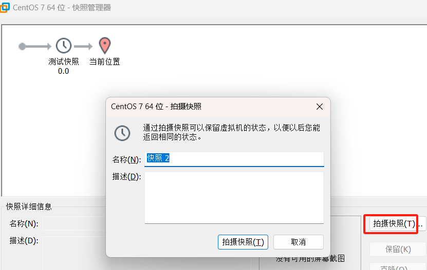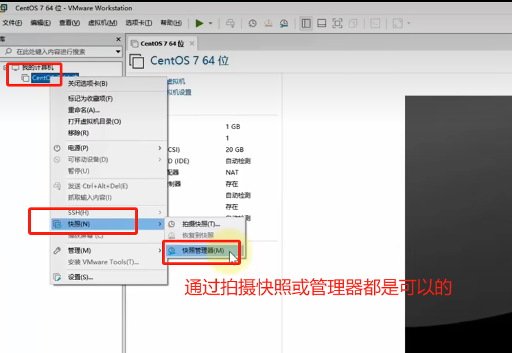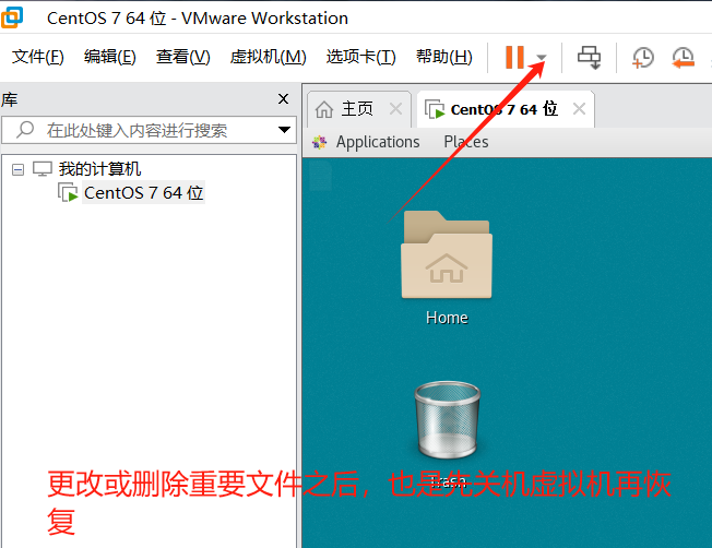 可以通过快照的形式,将当前的虚拟机状态保存下来,在以后可以通过快照恢复虚拟机到保存状态;
