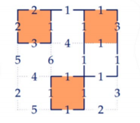 你需要在格子的边缘上建篱笆,每个格子的每条边都有一个代价,你需要让篱笆形成一个圈把所有村庄围住。