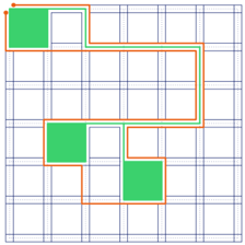考虑如下的结论:把所有村庄的左上角到整个网络的左上角的最短路全部标记出来,则必然存在一种最优方案使得篱笆包含了全部的这些最短路。