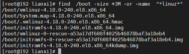 find /boot -size +3M -name "*linuz*" (默认是and)