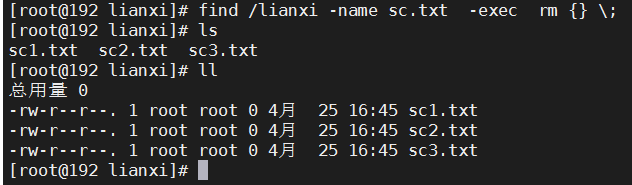 案例2、查找出来\lianxi目录下sc.txt文件,然后删除