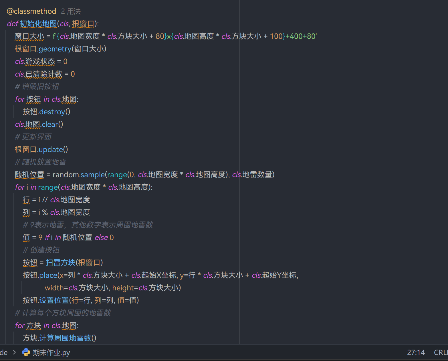 def map_mine(self)计算并设置每个非雷方块周围的地雷数量;