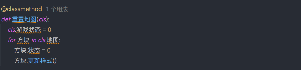 def update_style(self)根据方块的状态,更新显示样式,包括背景色;