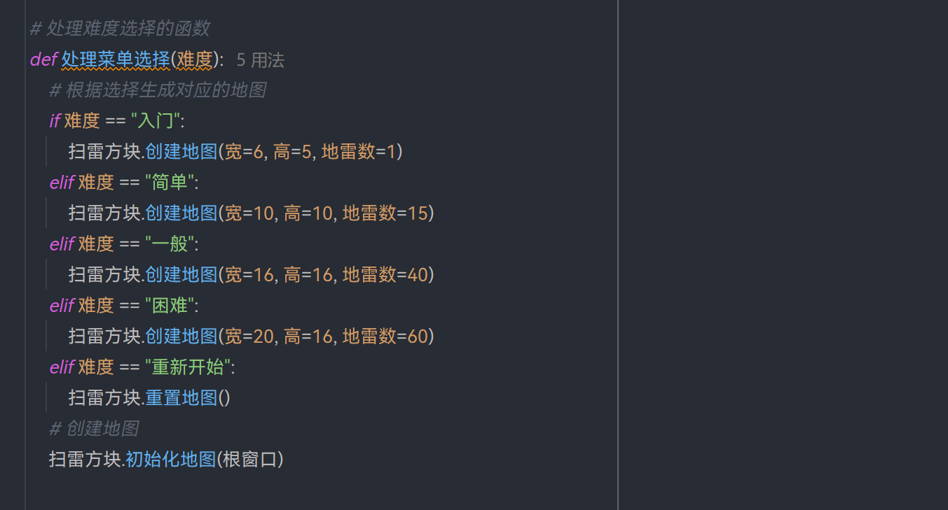 (9) def del_menu(args)定义一个菜单栏,允许玩家选择重新开始或不同的游戏难度
