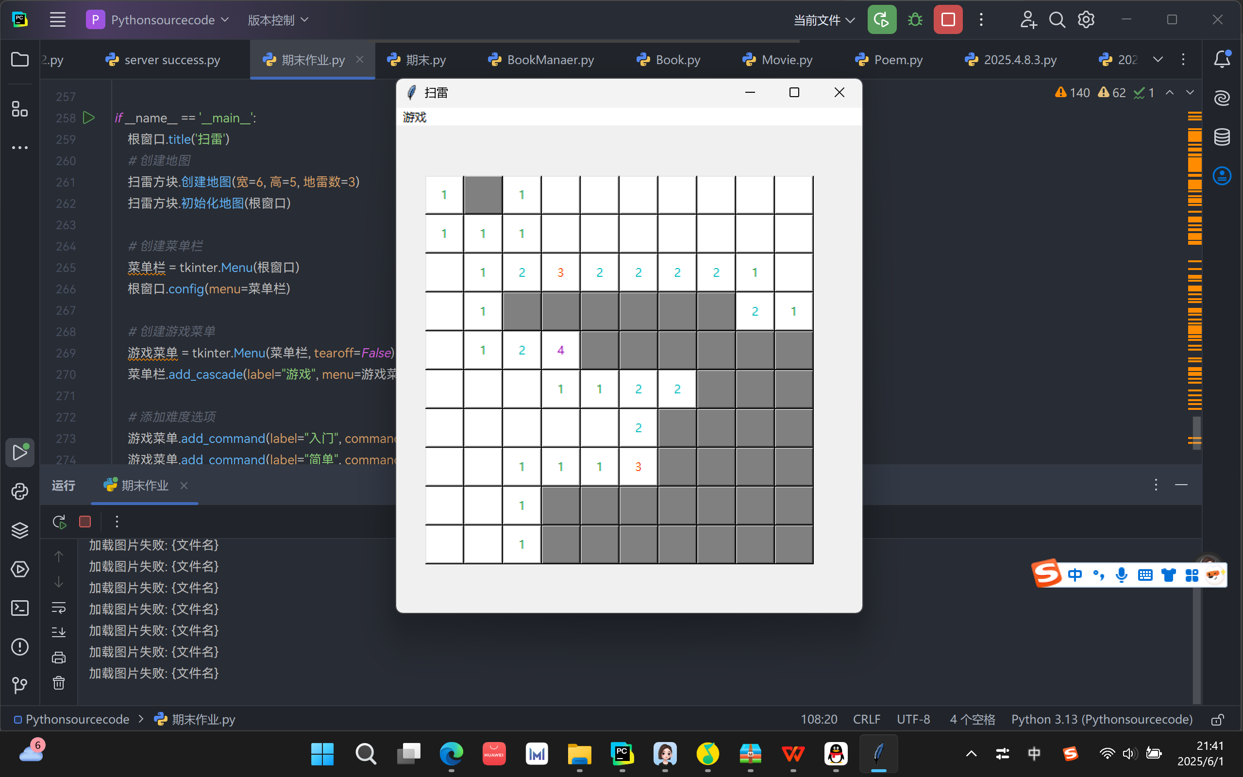 ·根据回顾老师上课讲授内容,以及结合自身能力和兴趣爱好,选择利用PyCharm制作扫雷游戏。