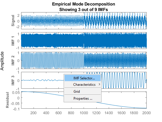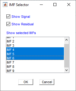 右键单击图中的空白区域以打开IMF选择器窗口。使用IMF选择器有选择地查看生成的IMF,原始信号和残差。