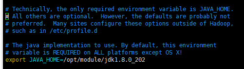 [root@hadoop01 ~]# echo $JAVA_HOME /opt/module/jdk1.8.0_202 [root@hadoop01 hadoop]# vim hadoop-env.sh