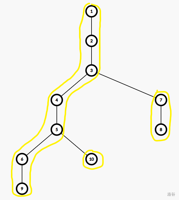很明显而发现,每一个点都会属于一个重链,或者说,整棵树被分成了若干条链