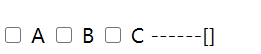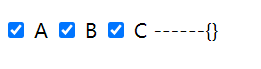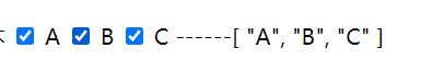<input type="checkbox" id="a" v-model="duoxuan" value="A"> <label for="a">A</label> <input type="checkbox" id="b" v-model="duoxuan" value="B"> <label for="b">B</label> <input type="checkbox" id="c" v-model="duoxuan" value="C"> <label for="c">C</label> ------{{duoxuan}}