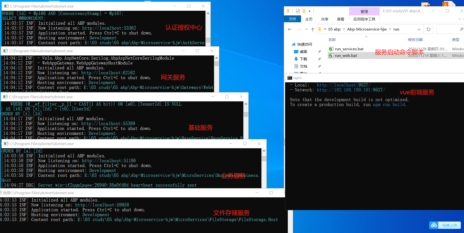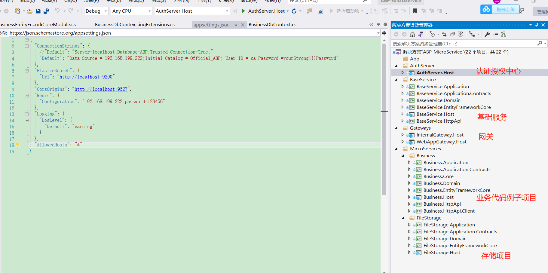 - 启动配置可以详见[Abp vNext微服务实践]文档