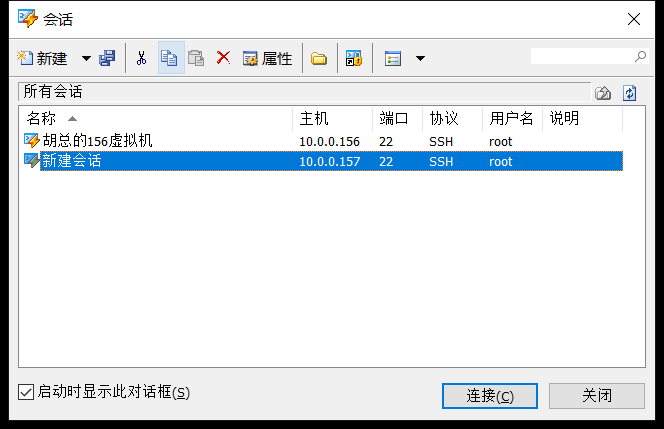 文件→新建→设置名称→输入虚拟机IP→用户身份验证→输入用户名,密码→选中连接