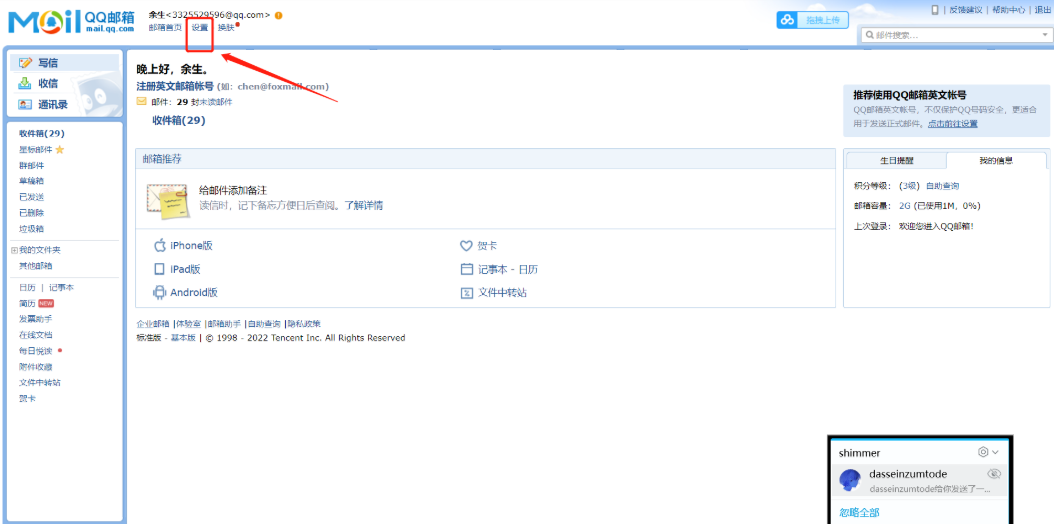 登录邮箱点击设置