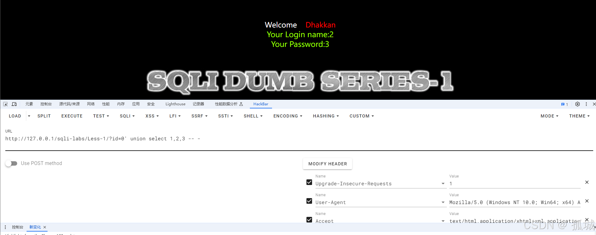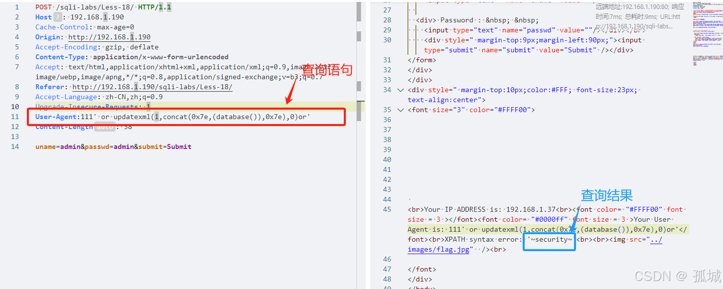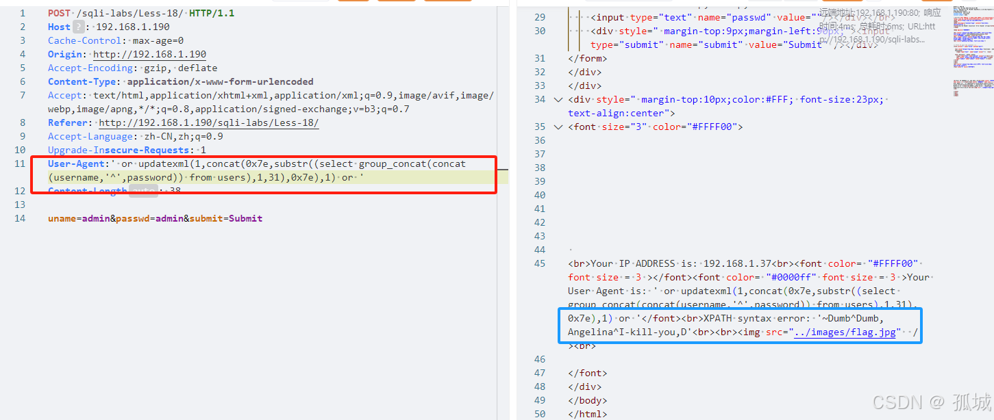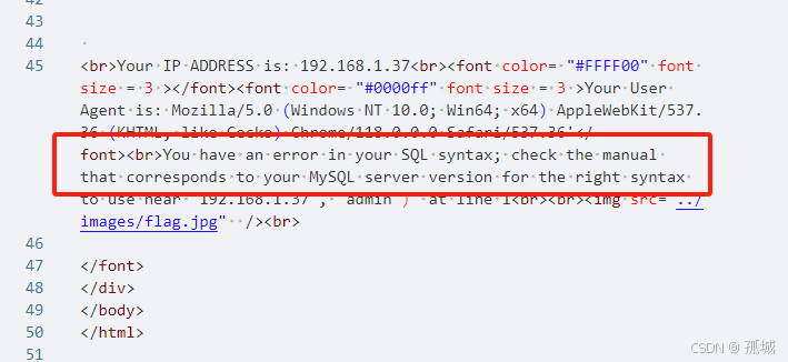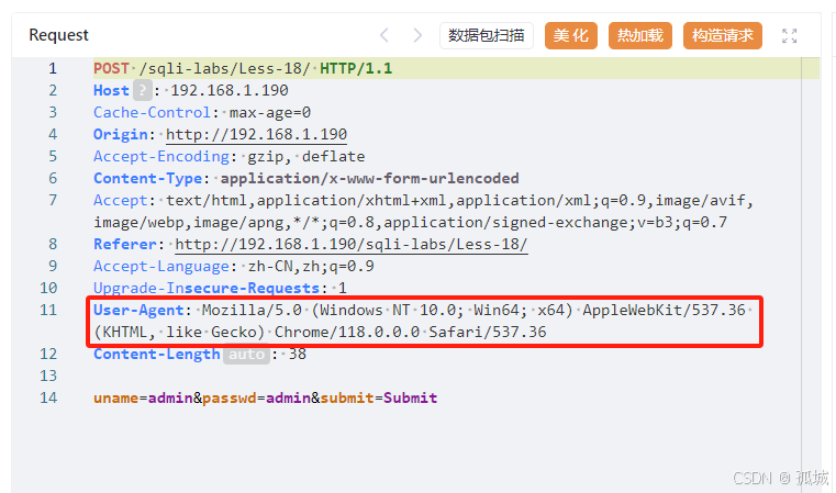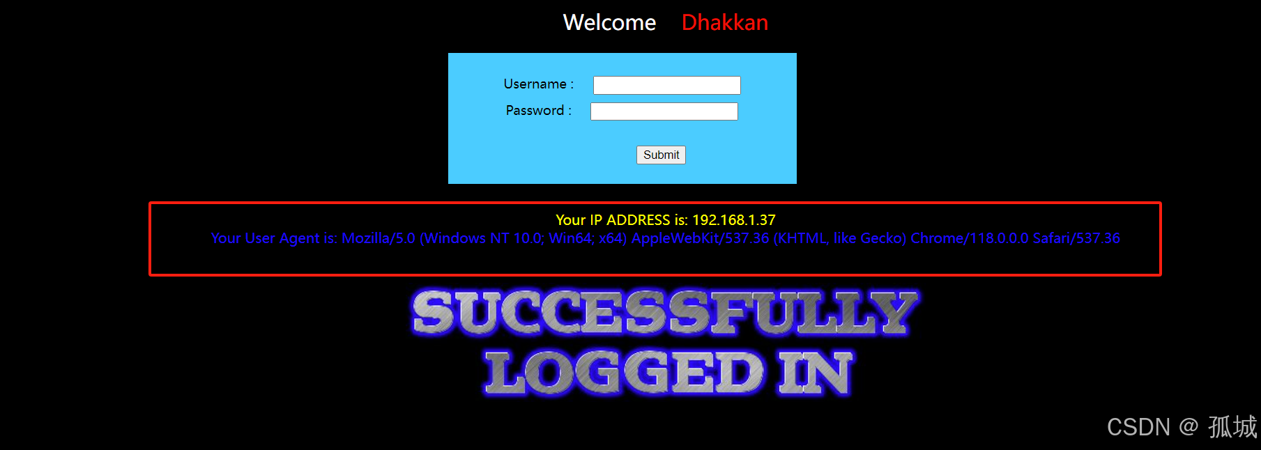 通过之前的判断方法没有发现有注入点的报错回显,但是在输入正确密码后页面返回了我们的User Agent 信息