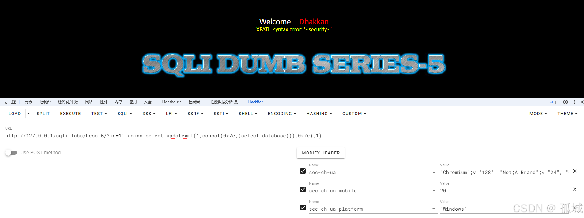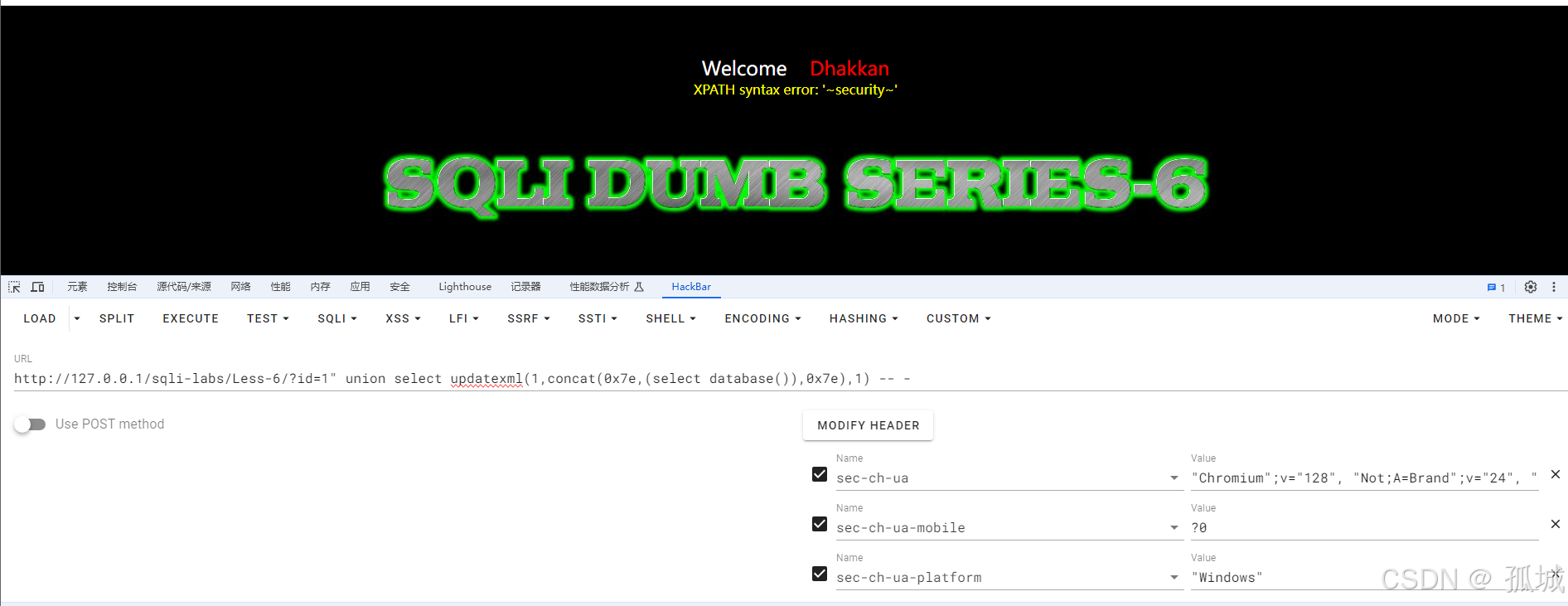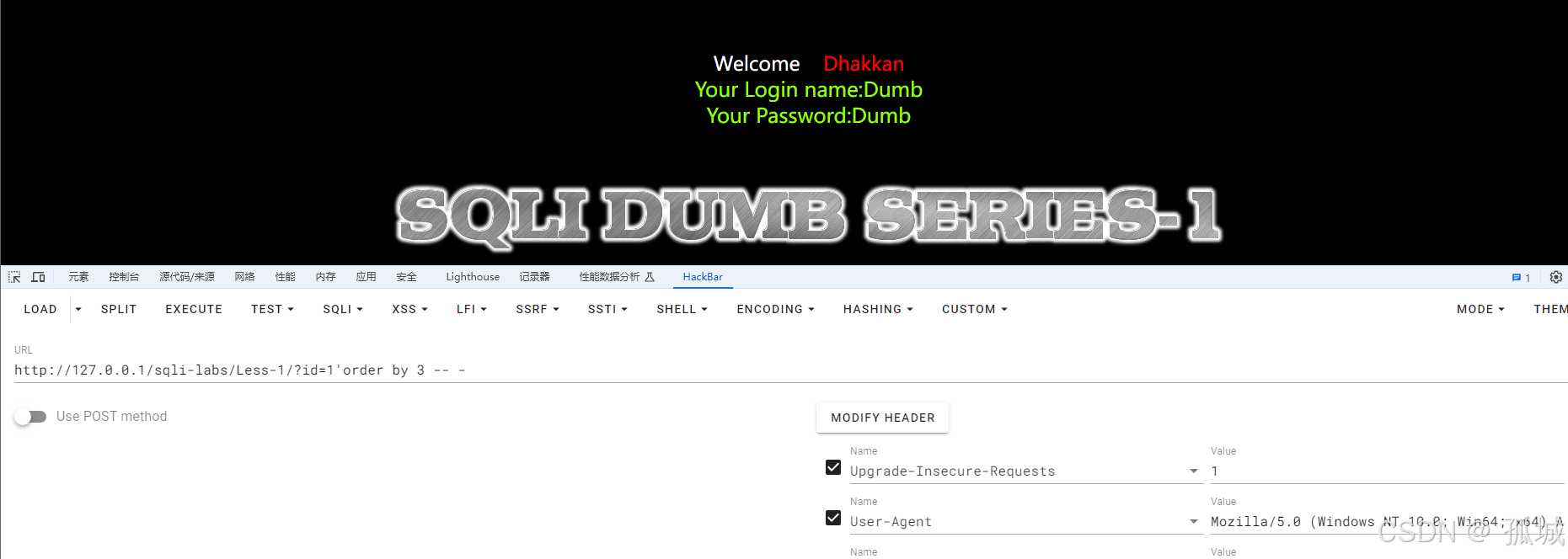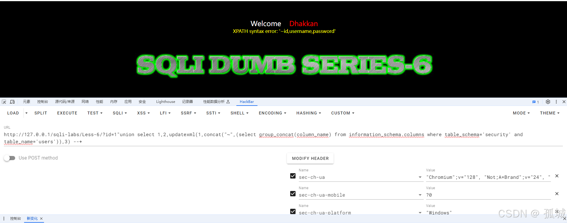 通过之前的判断方法没有发现有注入点的报错回显,但是在输入正确密码后页面返回了我们的User Agent 信息
