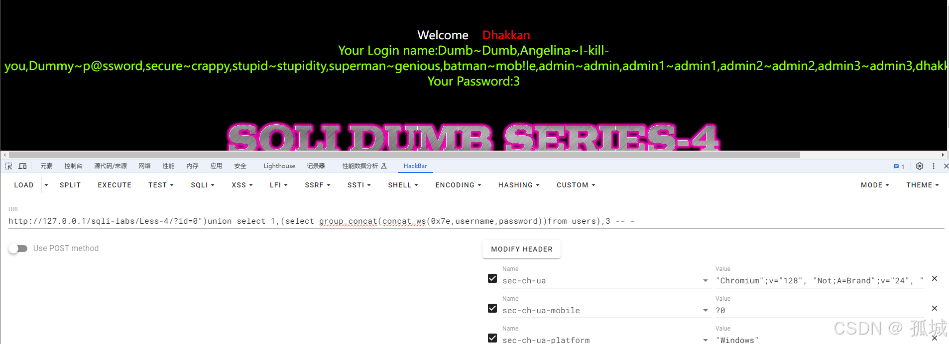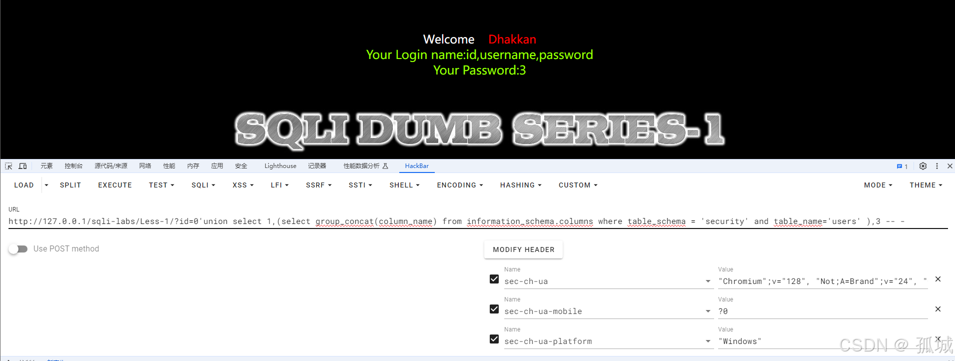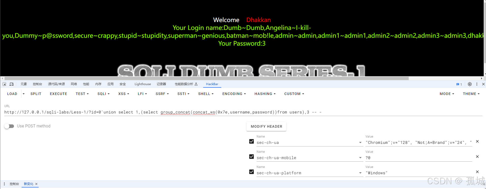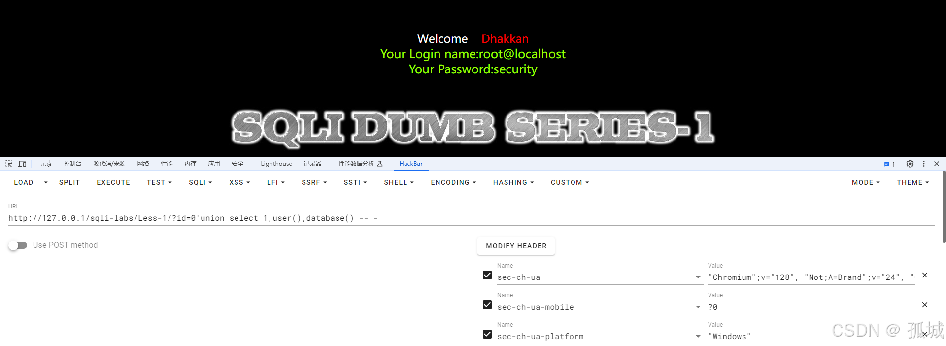 通过之前的判断方法没有发现有注入点的报错回显,但是在输入正确密码后页面返回了我们的User Agent 信息
