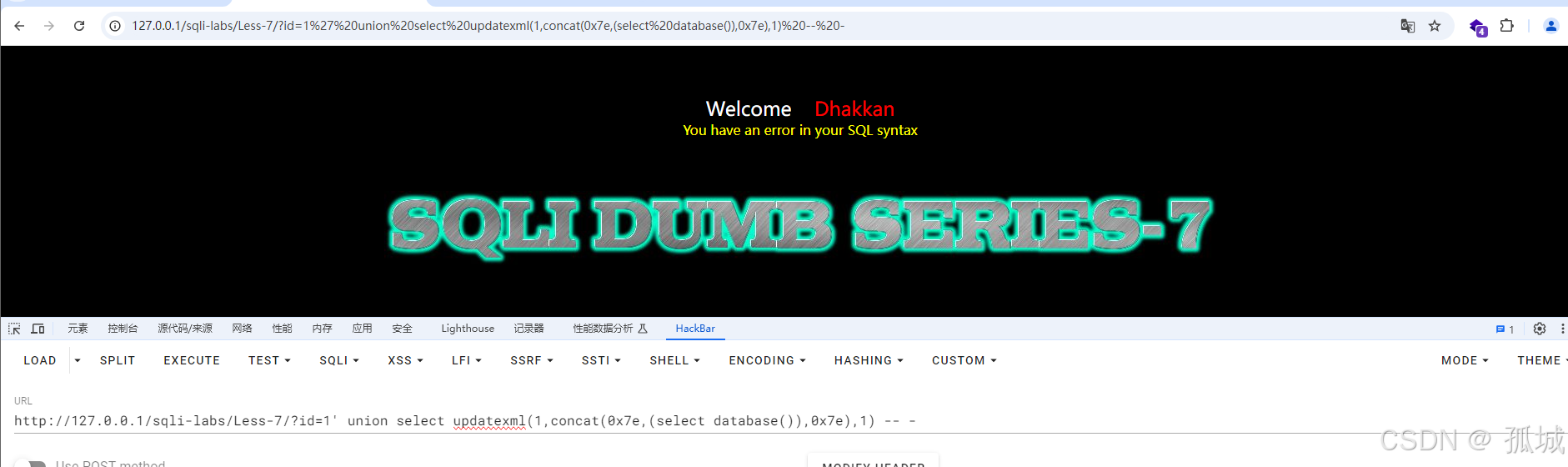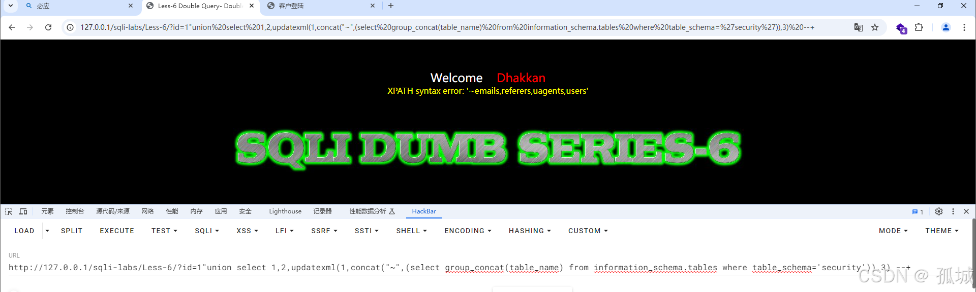 通过id=1'判断他url出存在注点闭合方式为单引号