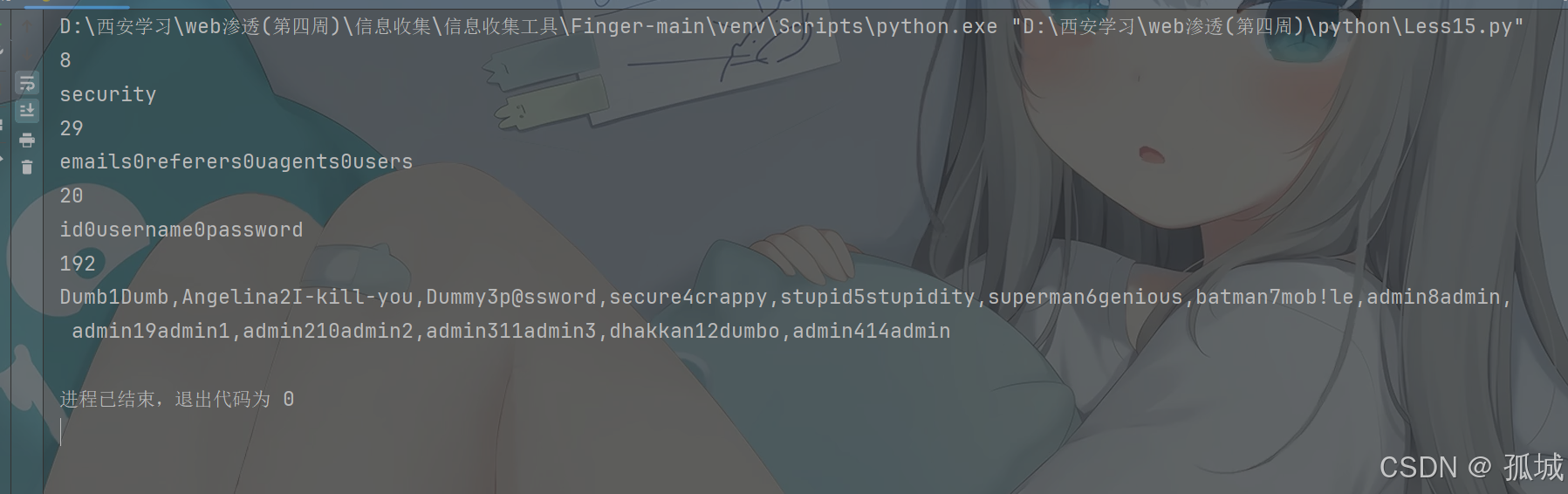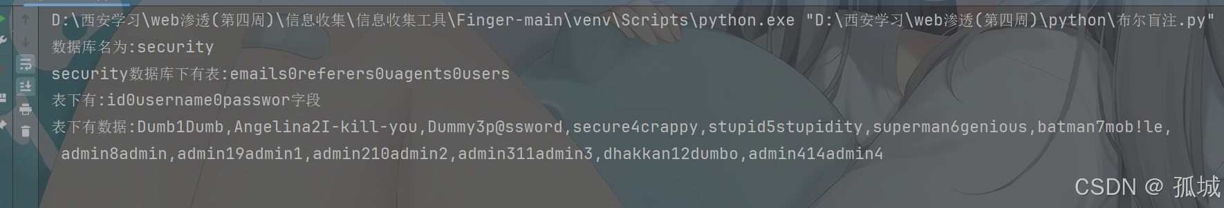 我通过时间盲注就可以得到数据(在这里因为时间太长的原因所以我没有跑出全部数据)