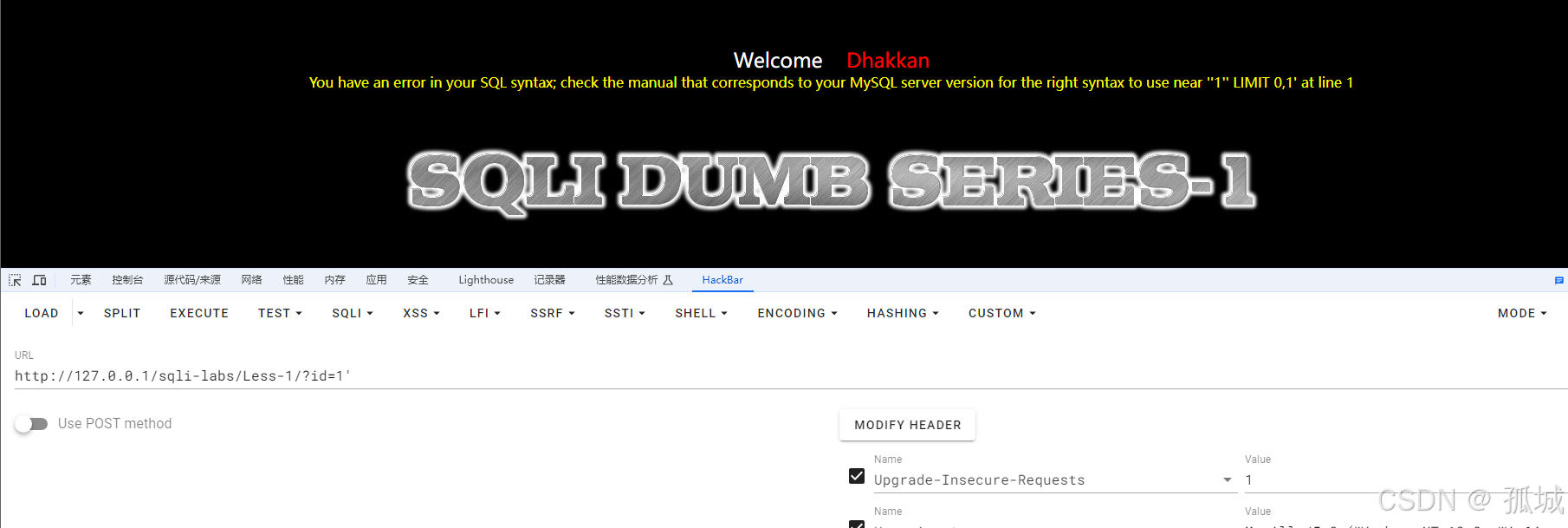 我们在User Agent 字段后面加一个单引号去看看会发生什么