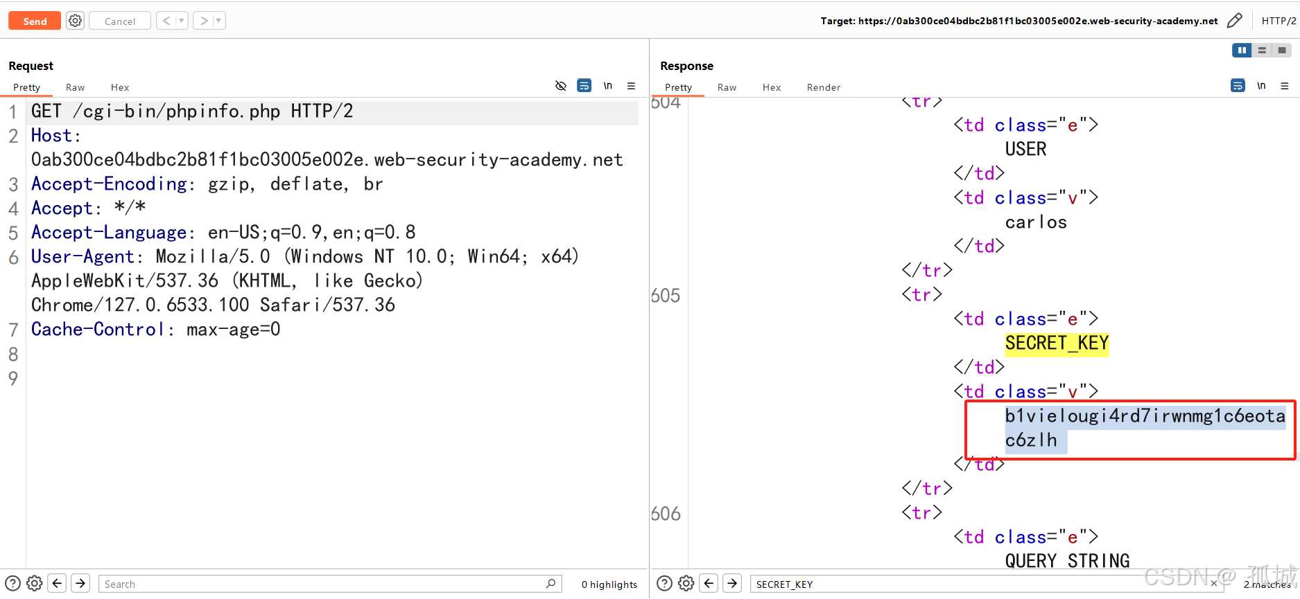 然后我们右键将它放到重放器中进行发送然后在回包中就成功找到SECRET_KEY的值
