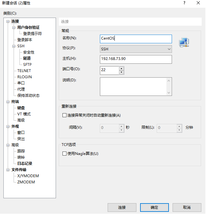 Linux的远程访问连接工具有很多:XShell、secureCRT、PuTTY等。这里使用XShell工具进行网络连接,打开XShell工具,新建会话,输入CentOS系统的IP地址,端口号默认22,协议是SSH,CentOS系统默认是打开openSSH服务。